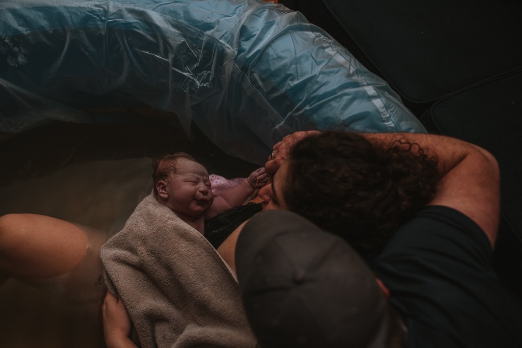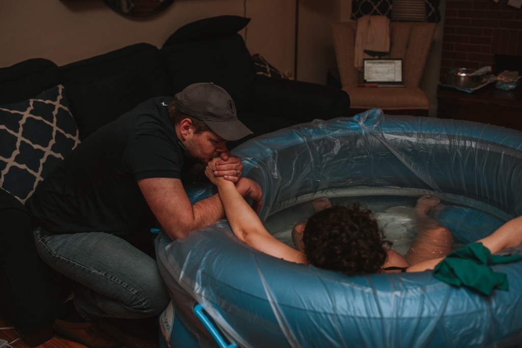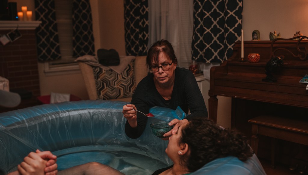 My birth team was so supportive and made me feel comfortable. My midwives were attentive to both me and my unborn baby – checking her heartbeat every so often and feeding me popsicles. My doula was really on top of it and suggested ways to make me feel more comfortable and labor more effectively. And of course, my husband who never left my side from the moment I got into the pool (he had the job of setting it up) – a constant in lending a hand to squeeze, encouraging me when I needed it, offering water, and praying with me.